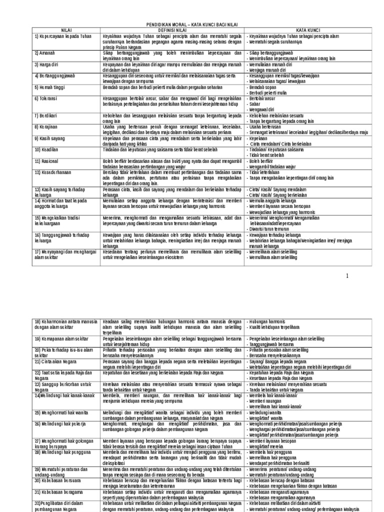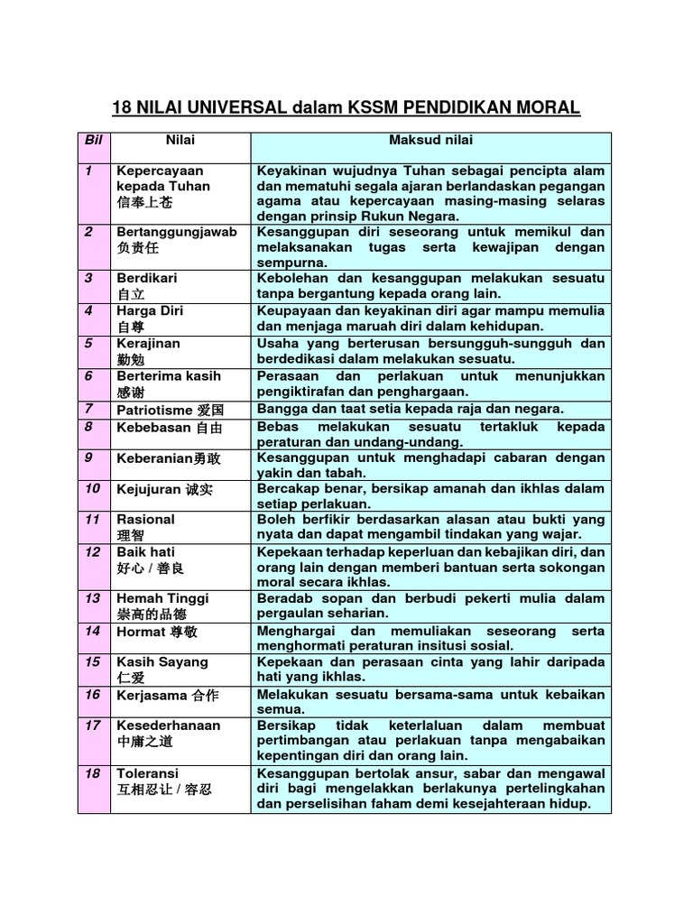 18 Nilai Universal Kssm Pendidikan Moral Pdf